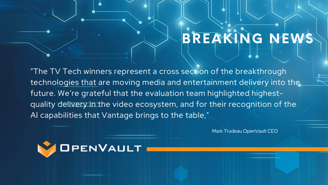 “The TV Tech winners represent a cross section of the breakthrough technologies that are moving media and entertainment delivery into the future,” said Mark Trudeau, CEO and co-founder of OpenVault. “We’re grateful that the evaluation team highlighted highest-quality delivery in the video ecosystem, and for their recognition of the AI capabilities that Vantage brings to the table.”